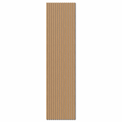 Le panneau acoustique est constitué d'un matériau absorbant en polyester de 9 mm composé, entre autres, de bouteilles en plastique recyclées. Les lattes en MDF sont fixées sur le feutre insonorisant de 9 mm. Les lattes sont d'env. 1,1 cm de profondeur et 2,7 cm de largeur avec une distance de 1,3 cm entre chaque latte.